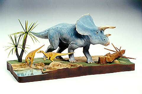 Сборная модель из пластика. Диорама Трицератопс и два Велоцираптора в масштабе 1:35