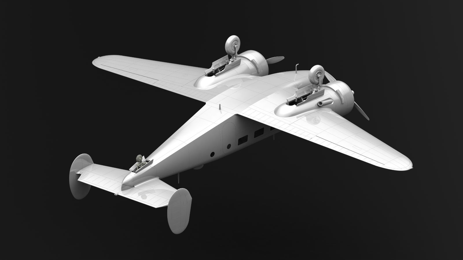 Детализированное шасси на выбор выпущено или убрано.