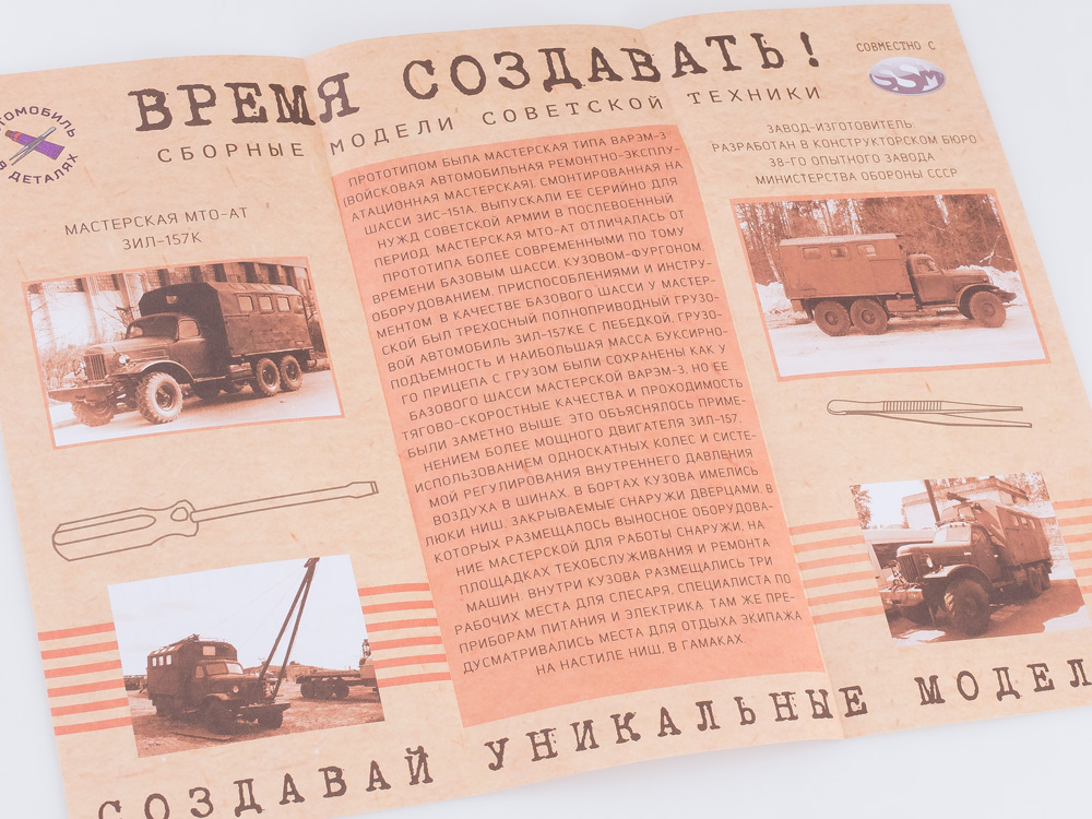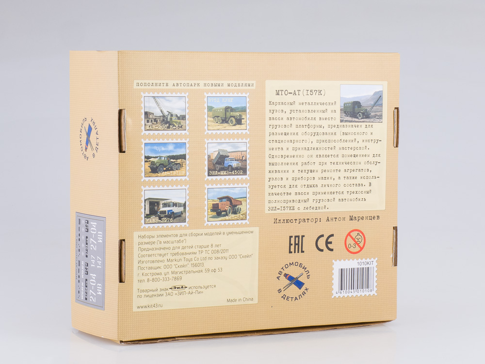 В комплект входит: металлический кузов, пластиковые детали для сборки одной модели, резиновые шины, декали и инструкция.