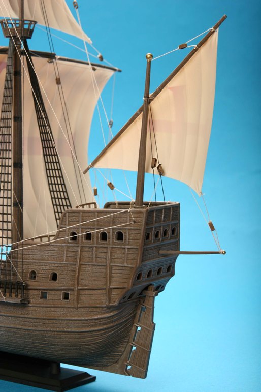 Модель корабля 16 века, на кораблях такого класса конкистадоры отправлялись покорять земли Нового Света. Корабль мог принять на борт до 900 тонн груза при водоизмещении 1600 тонн и мог перевозить 600-700 вооруженных человек. Для своего времени этот корабль был хорошо вооружен, на него устанавливалось 10 корабельных пушек и фальконетов.